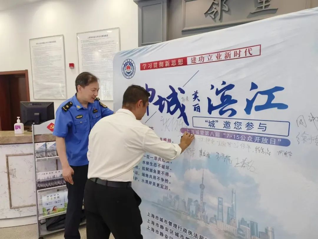 其中,最夺人眼球的莫过于“千人签名墙”。据悉,石门二路街道综合行政执法队在召开公众开放日的前一周,就在周边数个城管社区工作室中向居民进行活动预热,告知大家活动当天有满满干货,邻里听后都表示非常有兴趣参加。