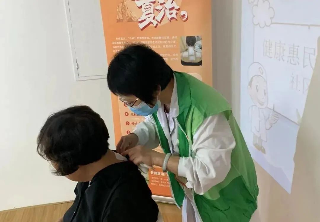 在中医康复区,中医学科的医生细心地为居民诊脉把脉,并提供免费的三伏贴、针灸服务,帮助居民增强抵抗力,提前防范呼吸系统、骨关节系统等冬季高发病。