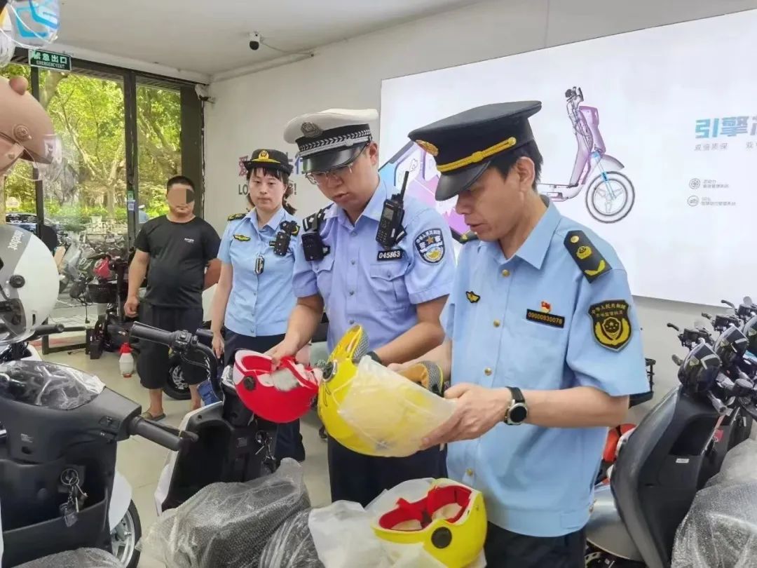 近日来,上海市公安局宝山分局交警支队联合区市场监管部门深入辖区各大电动自行车销售网点开展督导检查,并对存在销售非新国标头盔的门店,开具责令改正通知书。