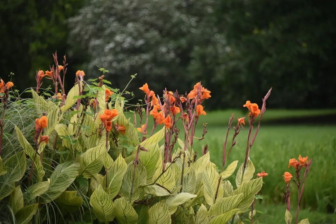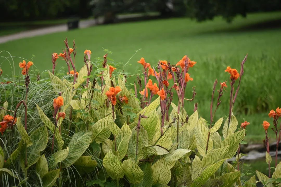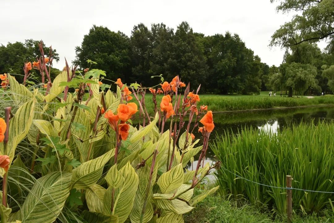 炎炎夏日,美人蕉在园内以鲜艳的花朵及浓绿的叶子,为公园的河岸景观增添生机,也丰富了公园水陆的色彩变化,是夏季公园里令人惊艳的一道靓丽风景线。