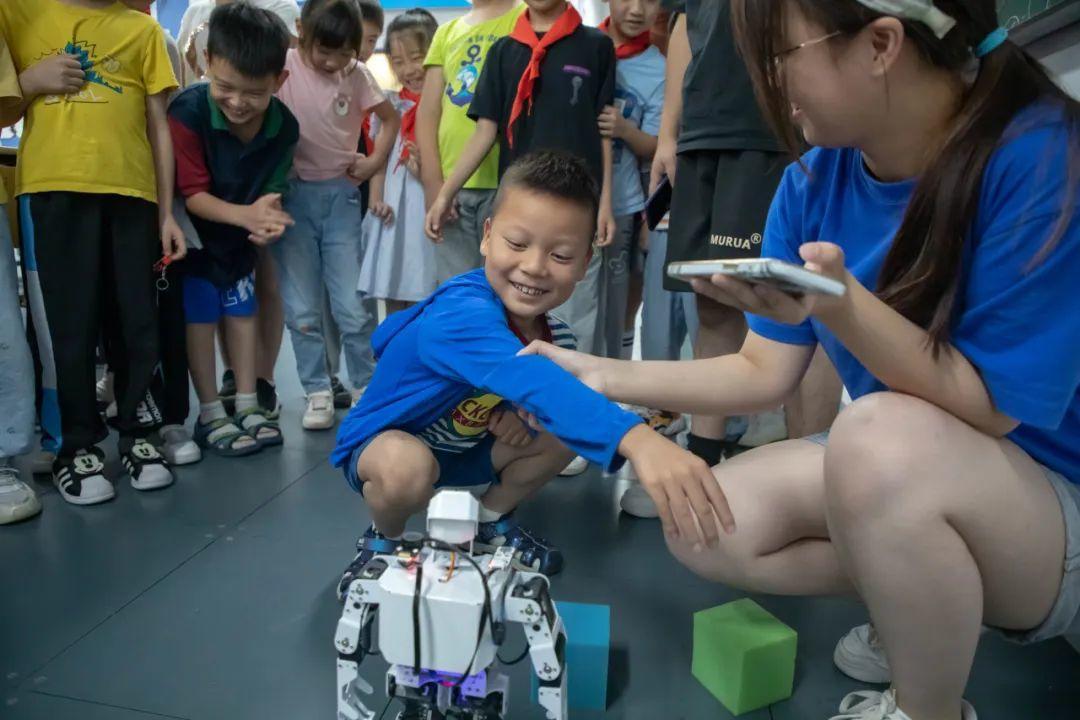 看着小朋友们在课上积极参与互动,收获满满,教授机器人实践的志愿者冉猛也感到非常有成就感。“我来自上海商学院,能够通过自己的专业特长激发小朋友对科学,包括对机器人这一领域的兴趣,我感觉十分有意义。我们也很享受与小朋友们互动的过程,看到他们的进步和成长感到很满足。”冉猛说道。