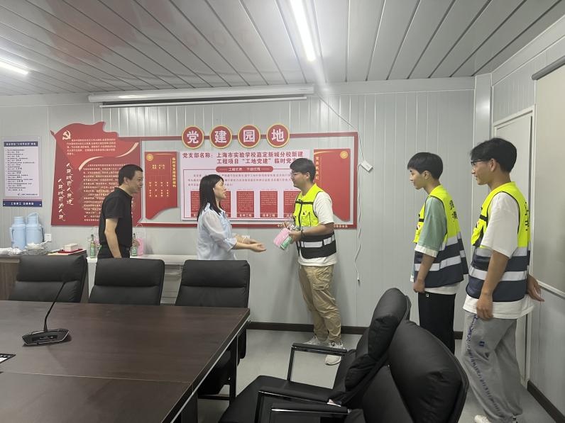 为了更好地发挥“工地党建”临时党支部战斗堡垒和党员先锋模范作用,聚焦工地“安全第一、质量为本、环境优先”的目标,7月13日下午,由嘉定住房集团代建的上海市实验学校嘉定新城分校新建工程开展工地党建活动,临时党支部全体党员、建设单位、施工单位和监理单位部分青年员工参加,建筑业监督管理中心党建联络员王爱玲莅临指导。