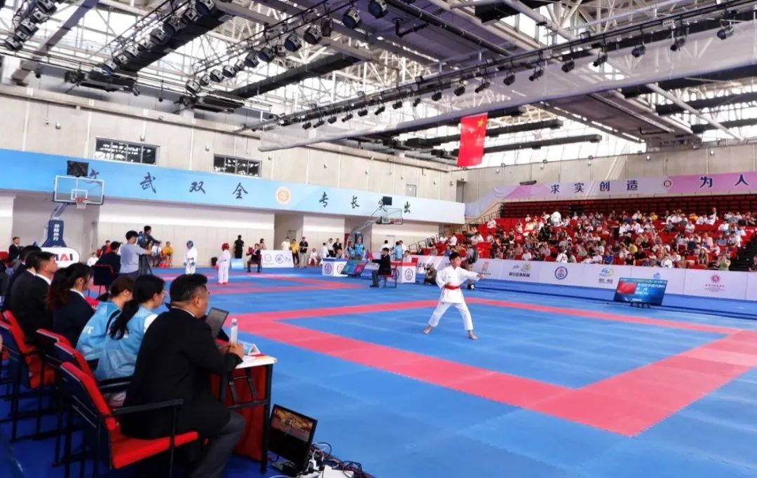 在现场表演的运动员代表赵思宇是一位赛场“老将”,刚上高一的他已学习空手道11年,曾获得市运会空手道项目冠军。对于这次比赛,他满怀期待,“赛场环境很好,作为全国性比赛,参赛运动员们水平也很高,今晚我将参加U18男子个人型比赛,希望能用实力和汗水获得奖牌。”