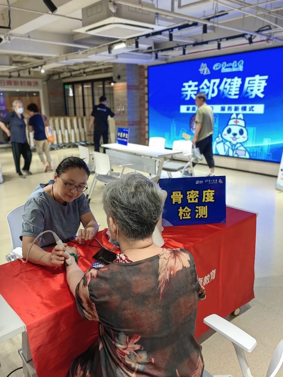 “快闪”轻体检是家庭健康日活动的保留项目,已经成为居民日常健康状况监测的前哨阵地。眼底检测、血压检测、微量元素检测、骨密度检测……内容丰富、定期到来的“快闪”健康监测项目,可以让居民在家门口快速监测自己的健康状况,一旦发现异常情况能及时进一步就诊、治疗。