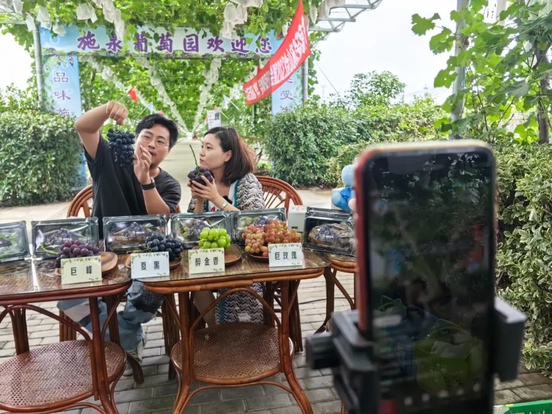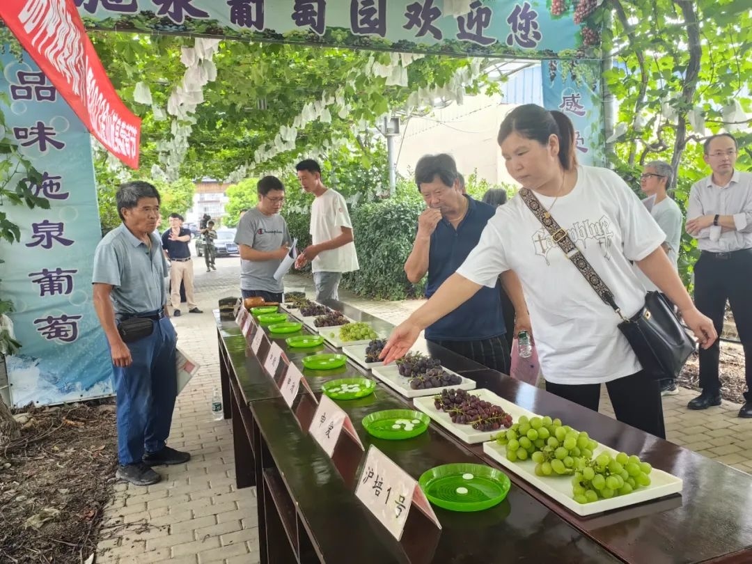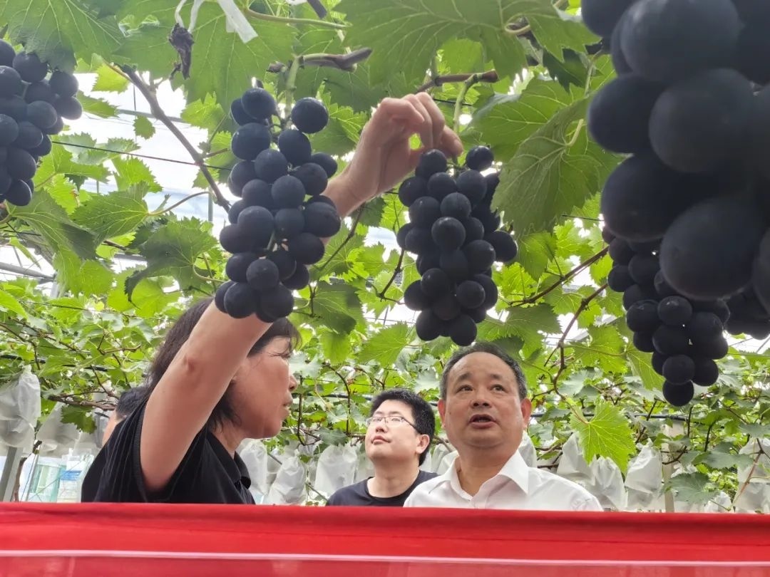盛夏七月,瓜果飘香。昨天上午,一年一度的施泉葡萄节在吕巷镇拉开帷幕。 活动现场,上海农业科学院带来了申玉、申歆、申园、申爱、申玫、申奕、沪培1号等优良品种的葡萄。其中最受关注的当属大粒无核的申华,其果粒饱满硕大,带有酒香,甜度普遍达到18度以上。该品种由上海市农业科学院葡萄科研团队,历经二十余年培育而成,极具市场推广应用前景。 现场,为加大科技成果推广力度、加快科技成果转化落地,还进行了申华成果转化框架协议签约仪式。 施泉葡萄园负责人卢玉金介绍道:“得益于今年光照充足,葡萄长势良好,吃起来浓郁香甜,价格也与往年持平,为30元到40元一斤,葡萄节将持续到10月中下旬。” 值得一提的是,2021年金山将6个果园组建为金山区葡萄产业化联合体,规模已达860亩,联合体负责人由卢玉金担任。联合体通过制定“施泉”标准、开展技术培训、现场“搭脉”指导、改善销售环境、整合“施泉”品牌,已累计种植销售葡萄5万多斤。今年更是将施泉葡萄批发销售给盒马鲜生超市,使各合作社和果农的经济效益比原来增加了50%-100%不等。 卢玉金透露,今年年底前,联合体将把符合“施泉”标准的2000亩葡萄也整合为“施泉”品牌,这样既大幅度增加果农收入,带动共同富裕,又为市民“果盘子”增添更多品质优良、鲜甜可口的精品葡萄。 记者 | 冯秋萍 林鹍鹏 摄影 | 庄毅 通讯员 | 陈志军 编辑 | 干钰琼 责编 | 俞萝寅 干钰琼