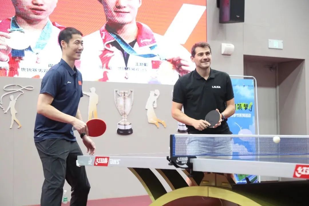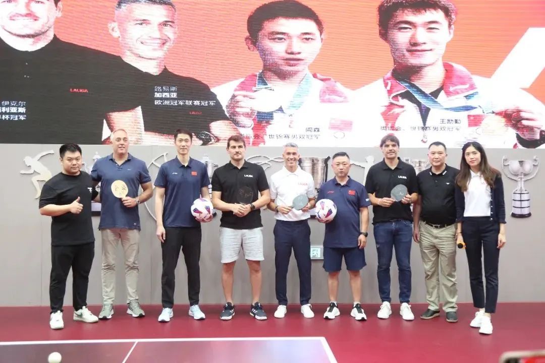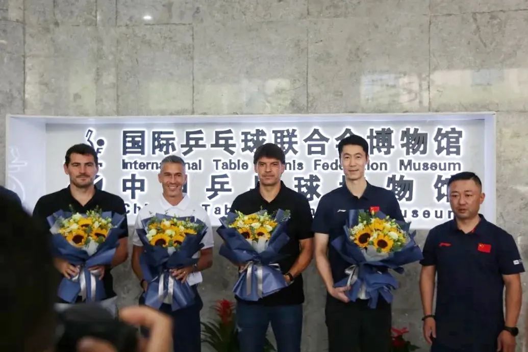 7月22日,伊克尔·卡西利亚斯、费尔南多·莫伦特斯和路易斯·加西亚三位传奇球星赴国际乒联博物馆和中国乒乓球博物馆(以下简称乒博馆)参观交流,奥运会、世锦赛双打冠军王励勤、阎森共同出席,双方展开足球与乒乓球的互动对话。