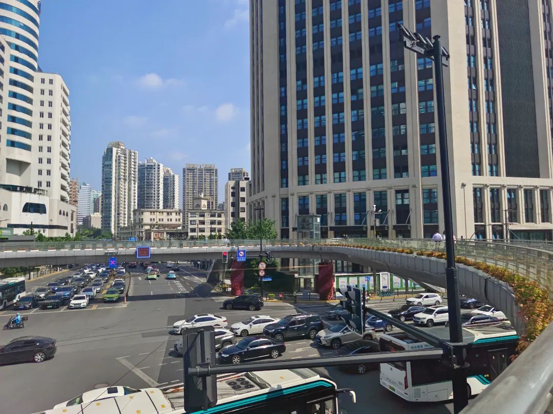 没有了人行信号灯的制约,架设于十字路口上方的人行天桥,大大方便了市民们的日常出行。