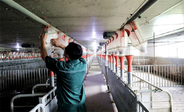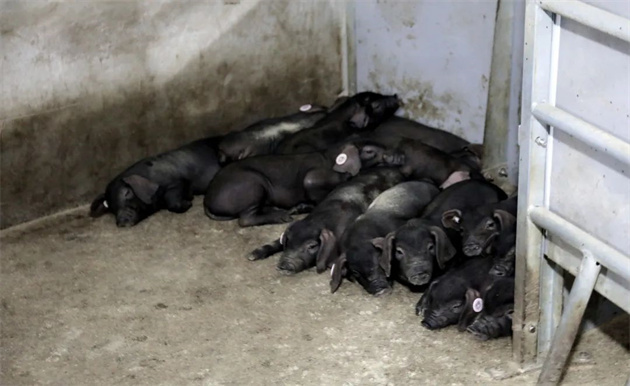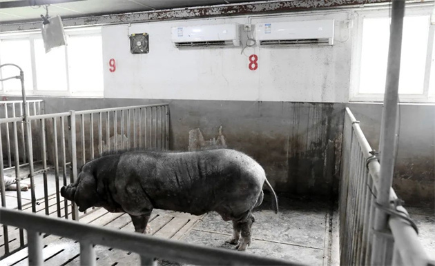 适宜的温度对于梅山猪的配种很重要。保种场负责人甘叶青介绍,在梅山猪种公猪养殖区,24小时空调不间断,需保持25℃-28℃的恒温环境,来确保公猪的繁殖能力不受夏季高温影响。 除了豪华空调房,保种场最多采用的是湿帘通风的方式降温。棚舍四周都安装了湿帘,水自高处的管道如帘幕般平直流下,带来一缕缕清凉。 据介绍,当环境温度达到30℃时,湿帘系统会自动启动排风机,通过猪舍内空气流速使室温降低3℃-4℃。 此外,为应对高温,部分猪舍还安装了喷淋系统。“猪的脂肪含量高、产热多、散热差,不及时降温会导致它们食量下降,影响生长,严重的会引起中暑。”甘叶青说,必要时会开启喷淋,可瞬时降温近2℃。 在防暑降温的基础上,保种场还在饮食上设法给猪增膘。每年8月前后,工作人员会添加一定比例的浓缩饲料,优化喂养管理,避免高温影响猪的食欲,保障生产效益。