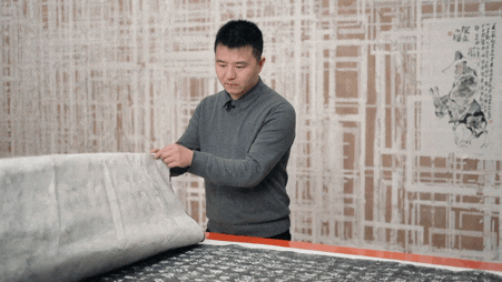 “我们一直在做宋式裱的恢复,材料上有,但是从来没碰到过这么大的立轴修复。”分析出问题和难点,团队开始逐一攻克解决。设计样件、定制材料、调整加工、联络工厂……整个团队分工细致有序,仅前期准备工作,便花了将近半个月时间。