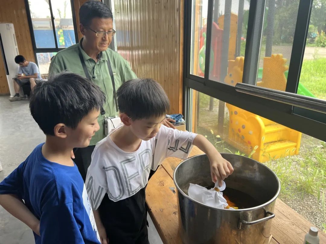 ·小林童· 小 小 农 场 主 亲 子 夏 令 营 这个夏天 我们把劳动课堂“搬”到大自然中 让孩子们在大自然中去增长知识 开阔眼界,启迪智慧 “小林童”亲子家庭在农场 在参观中享受快乐 在采摘中提升幸福 探索动植物小世界 欢迎来到森林游乐园 伴随着虫鸣鸟啼,“小林童”们走进了森林游乐园,乐园内的设施参考了德国森林教育模式,营造一种开放、有创造性的空间,激发“小林童”们独立个性的思维。 “小林童”们都跃跃欲试,他们有的鼓起勇气挑战悬在半空的滑索,有的在森林“海盗船”上一起摇啊摇,来训练团队协作力,还有一些观察着一草一木,探索大自然的奥秘。 采摘成熟新鲜果蔬 “大家知道这些都是什么蔬菜吗?”农场田地里的当季果蔬种类齐全、丰富饱满,通过科普的方式让“小林童”们好奇地观察,以此来认识果蔬基地中的各种蔬菜水果。 “小林童”们撸起袖子,蹲下身子一边采摘小番茄、彩椒茄子等果蔬,一边在父母的陪同下认识各类水果的属性,在采摘的同时,感受到大自然给予的丰富馈赠。 参观乡村迷你动物园 羊儿咀嚼着眼前新鲜的小草,小猪在泥潭上打滚。“小林童”们兴奋地朝着农场里的小动物挥手,纷纷上前投食,有胆大的小朋友轻轻地靠近小羊羔,抚摸羊角。 体验手工植物染 “小林童”们来到木屋内制作植物染,利用栀子花调成的染剂,在手帕上染上自己喜爱的图案。 通过老师的教学和父母的帮助,“小林童”们先用橡皮筋扎紧手帕,将它浸泡于植物染染剂中,等待半小时后取出。 大家作出的图案各式各样,无不一一体现了“小林童”们出色的动手能力。 亲子上阵钓龙虾 大人孩子摩拳擦掌齐上阵,下钩引诱,耐心等候,瞅准小龙虾,杆子上挑、一气呵成,张牙舞爪的小龙虾们,在他们的面前毫无招架之力,不一会儿大家都收获了属于自己的战利品。 “小林童”变身小小农场主乐享丰收 是不是隔着屏幕都能感受到他们的喜悦 我们将持续喊响“五育并举促成长”口号 建设儿童友好社区 为“小林童”们提供优质服务 “小林童”夏令营第二期即将启程 敬请期待!