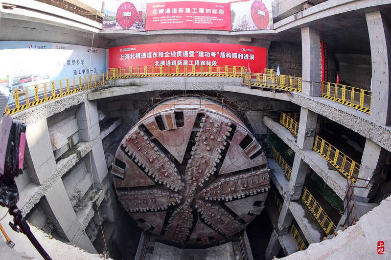 当日,北横通道新建工程又有新进展。直径15米级超大盾构抵达接收井端头、缓缓进洞,意味着北横通道新建工程Ⅶ标隧道全线贯通,加上之前实现贯通的Ⅴ、Ⅵ、Ⅷ标段和隆昌路下立交,北横通道东段实现了全线贯通。