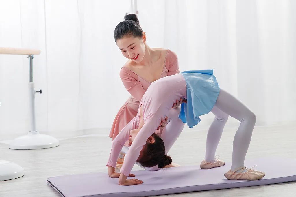 要在专业人员的指导下练习舞蹈动作,不建议儿童自行学习、训练舞蹈。如果想参与下腰训练,家长要先带孩子进行体检,有隐性脊柱裂、脊髓拴系综合征等脊柱先天异常的儿童不要学习舞蹈。
