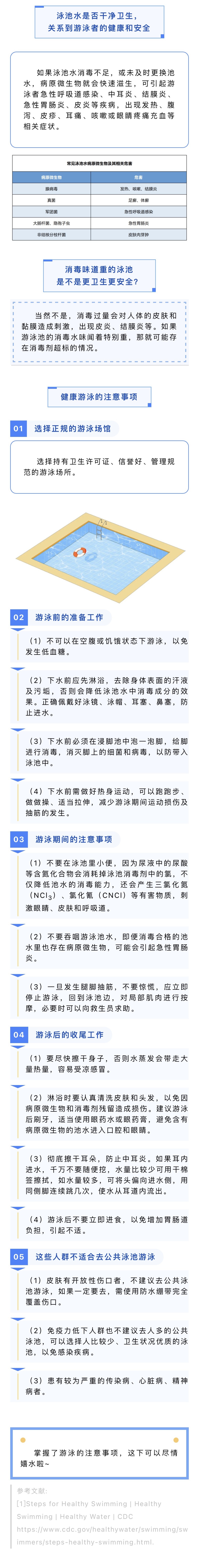 游泳前做好淋浴、消毒和热身。