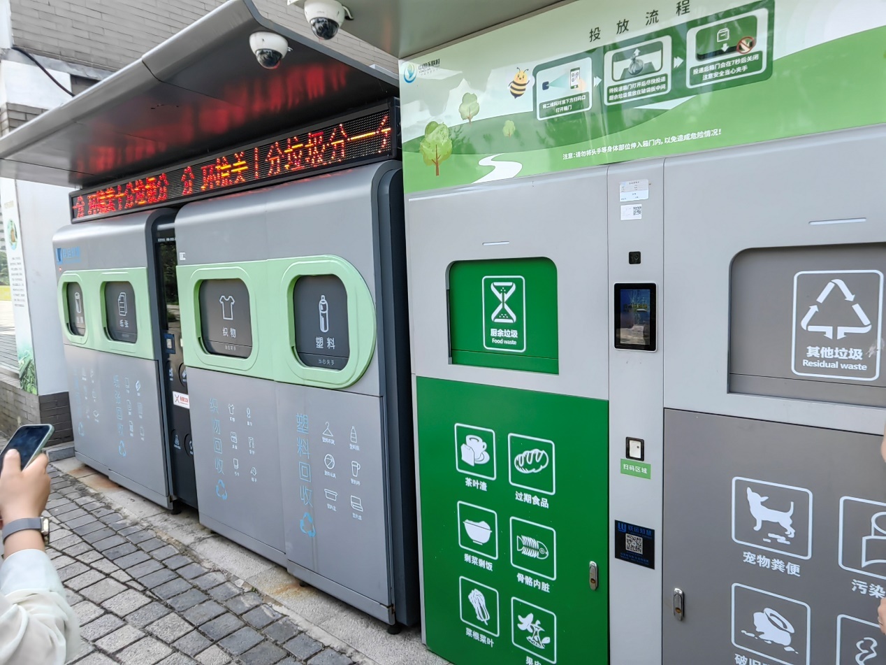 原来,村里给每户居民分发的垃圾袋上都有二维码,投递后网络实时处理,获得的信用积分可以兑换礼物,如有违规投递,还可通过视频摄像头高清留痕。这样的垃圾回收箱在城市里尚未普及,而在永联村,已有100多个,覆盖全部4000余户居民的生活场所。
