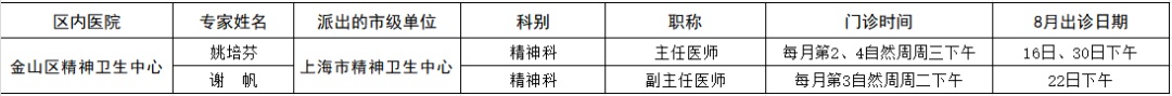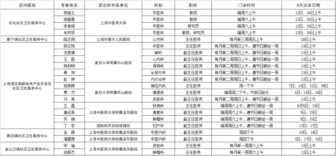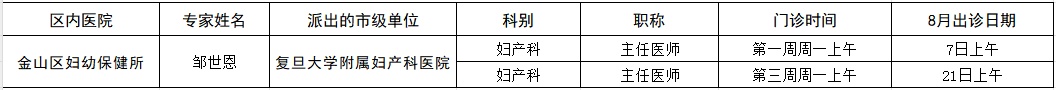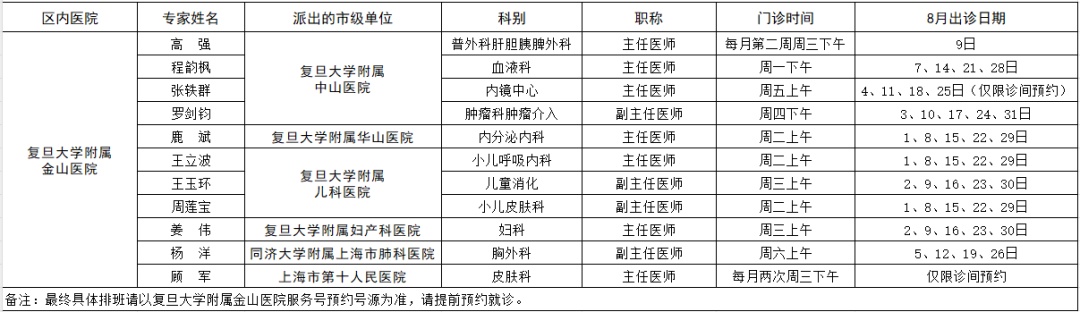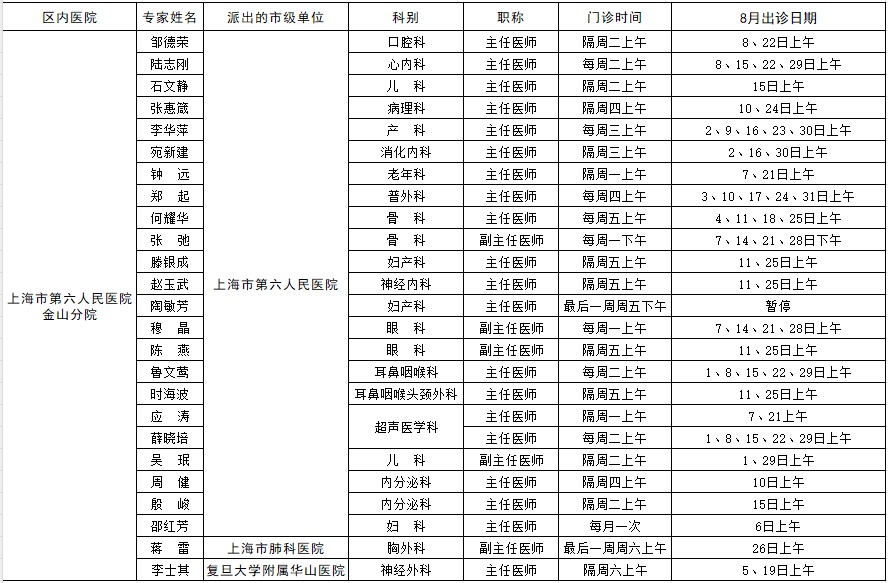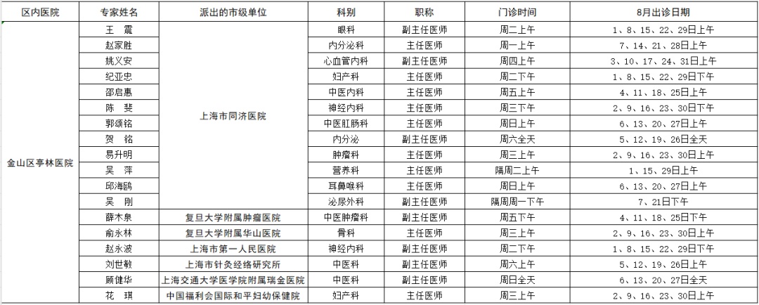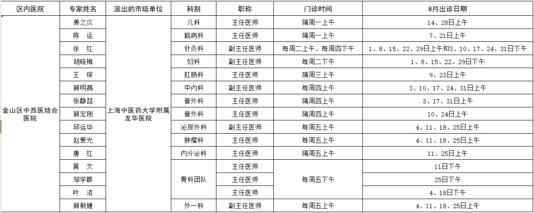 市级专家2023年八月出诊表