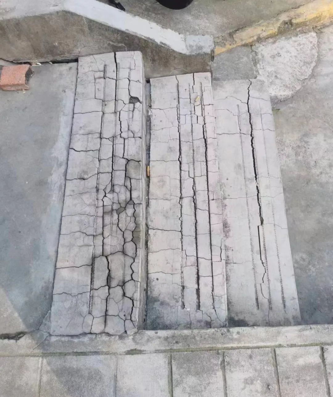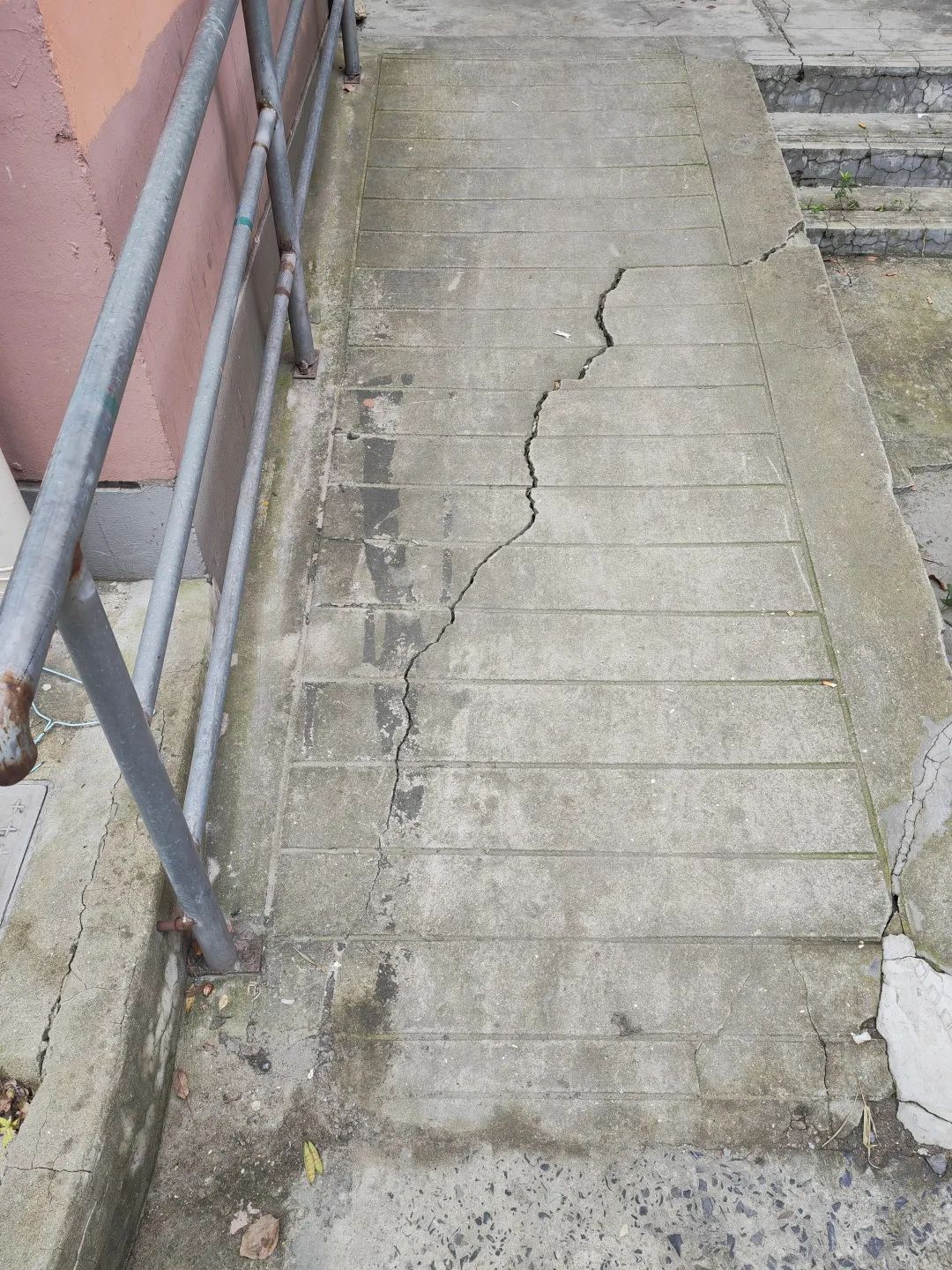 会议结束后,居委与物业立即分块开展了全面排查,一一记录下破损程度和楼道号。统计发现,共有16个楼道存在台阶、坡道开裂破损情况。