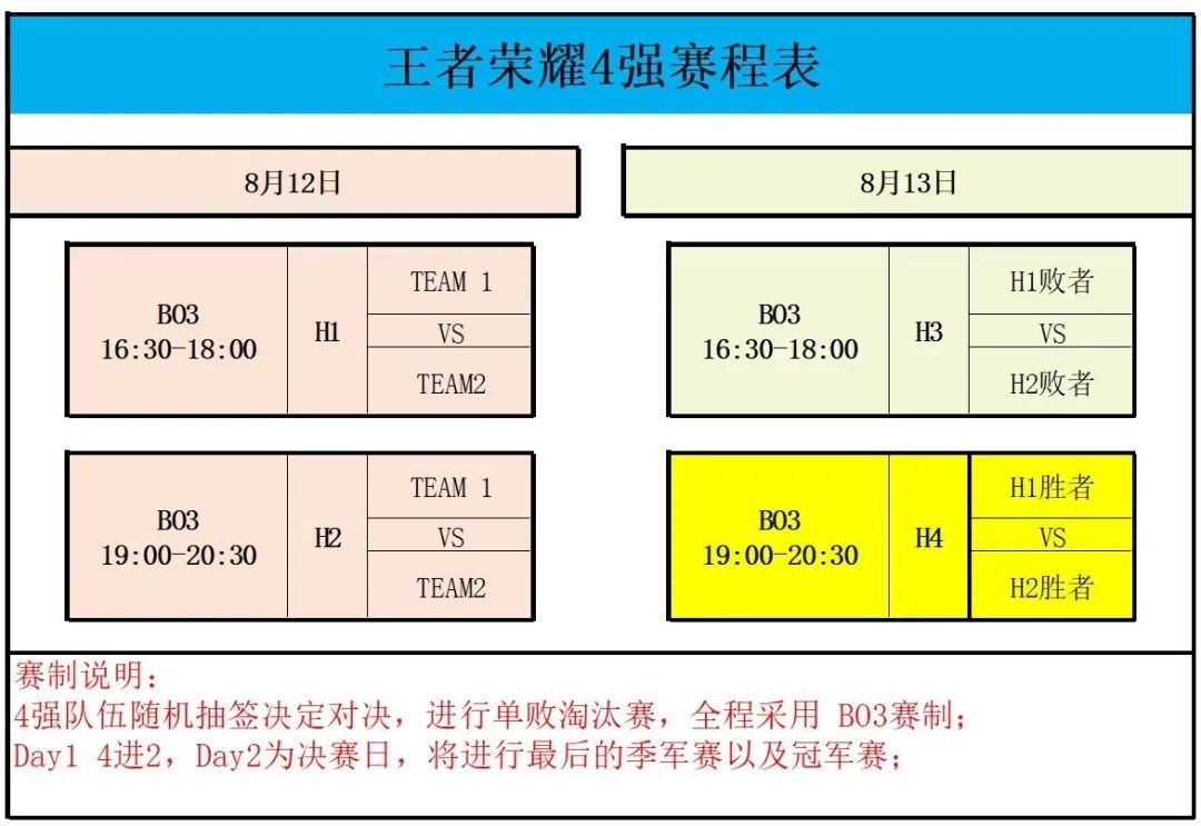 8.12、8.13王者荣耀四强赛程表