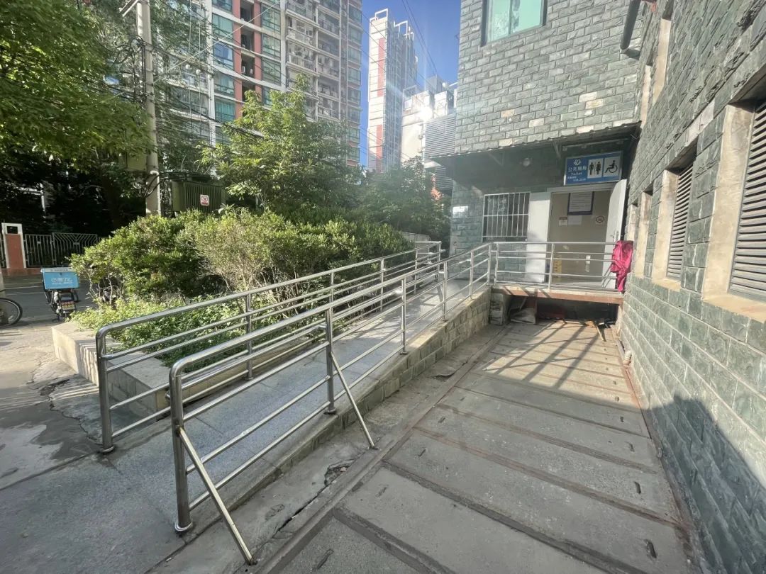 如何把群众的“烦心事”办成“舒心事”?在了解实际需求后,居委会召开了“三位一体”会议,在多方联系的基础上集思广益,寻求修建无障碍通道的解决方案。最终在长风新村街道城市运行管理中心、普环公司、商铺所属景瑞物业公司以及居民区楼组长的群策群力下,形成了初步的方案,因地制宜地从隆德路公厕的无障碍通道着手,打通和超市的连接通道,拆除隔断通道的扶手,并在新扩展出的平台上增设防护栏。