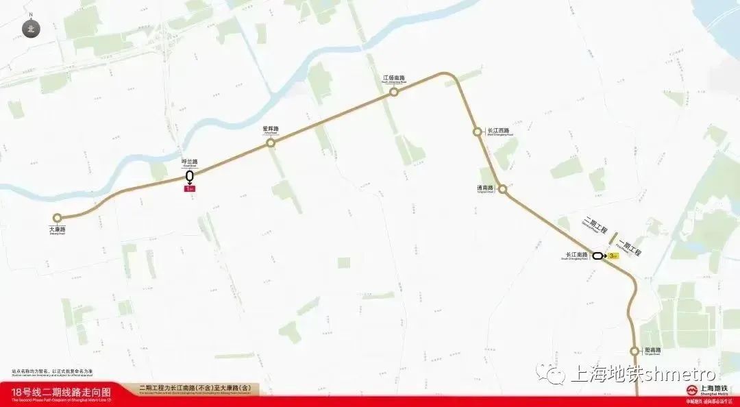 轨道交通18号线二期位处宝山区,起于一期工程终点站长江南路站,至大康路站,正线长约8.1km,全部为地下线,共设6座车站。18号线二期建成通车后,将进一步提升主城区北部区域东西向运力,进而服务吴淞地区转型发展。