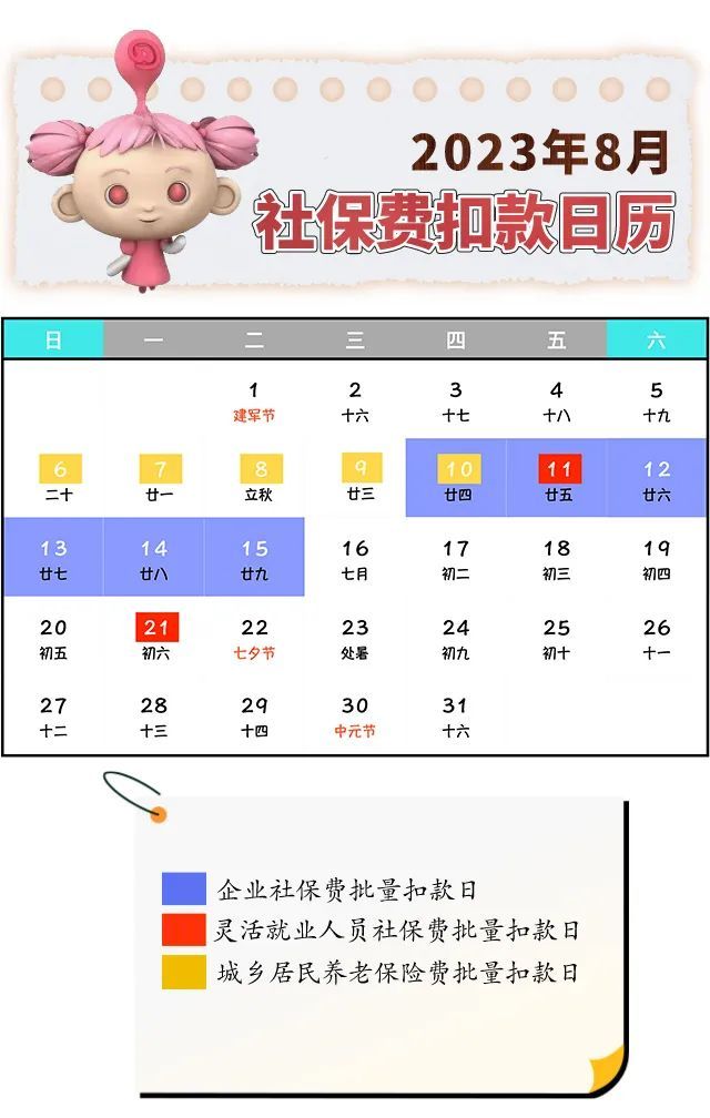 现将2023年8月社会保险费扣款时间安排告知如下,快来查收吧!