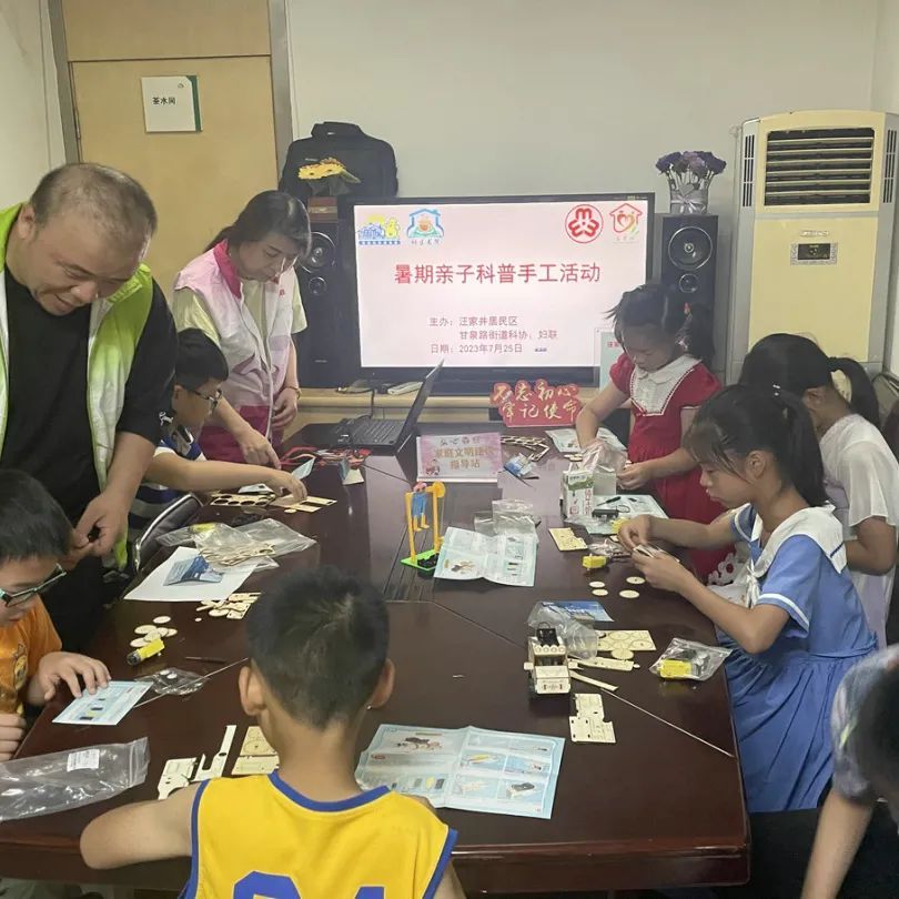 为进一步丰富社区青少年暑期学习生活,提升创新意识和科技实践能力,近日,甘泉路街道科协携手妇联在社区各家庭文明建设指导站开展暑期亲子科普制作活动,让亲子家庭通过互动的方式了解科学的奥秘。