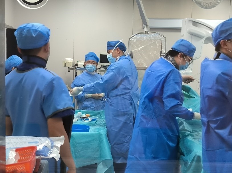血管外科团队立刻对吴老太的腹主动脉瘤进行精确地重建和测量,并对接医院特聘教授、上海交通大学医学院附属第九人民医院血管外科专家殷敏毅。殷敏毅教授详细了解了吴阿婆的病情,经过数日的讨论和筹备,和医院血管外科团队决定对其进行“腹主动脉瘤腔内隔绝修补术”。