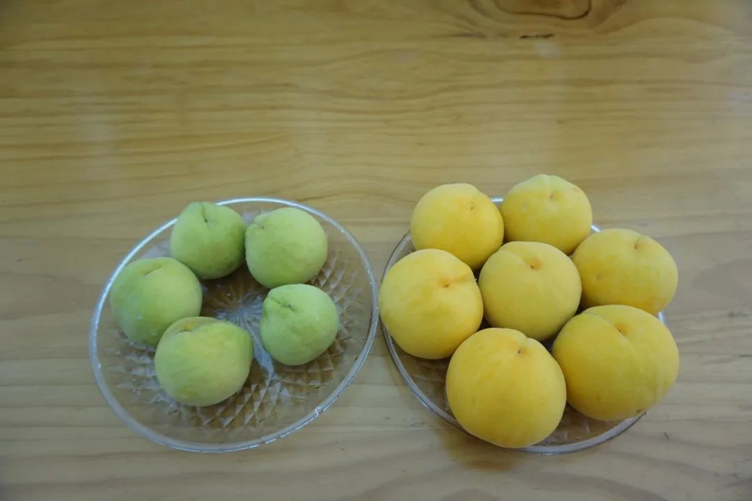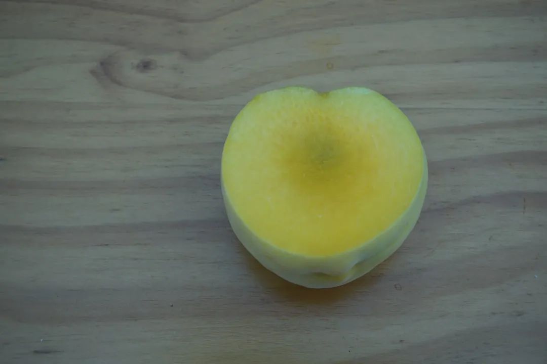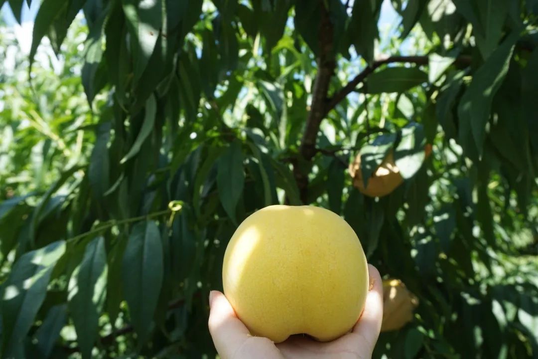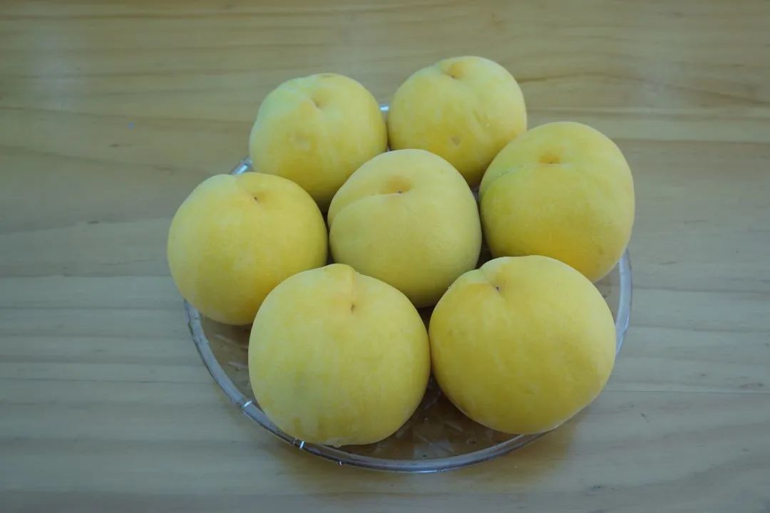 果皮金黄色,果肉黄色,肉质细,汁液较多,香味浓,平均可溶性固形物含量13.6%,鲜食品质优。近核处无红色,粘核。