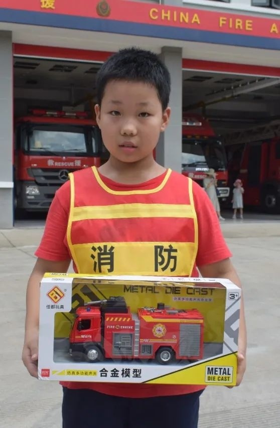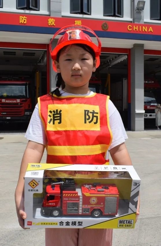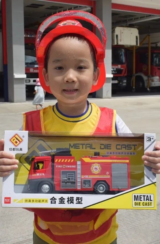 活动最后还有抢答环节,消防员向回答正确的小朋友赠送了消防车模型。