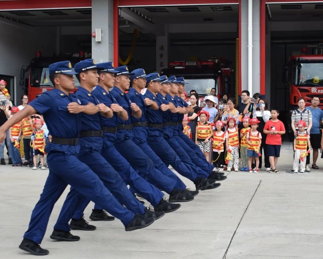 随着“一二一”的口号声响起,消防员们迈着整齐的步伐入场,为孩子们准备了一份特别的“见面礼”。大家感受到了消防救援人员“队列整齐、令行禁止”的过硬作风和严格纪律。