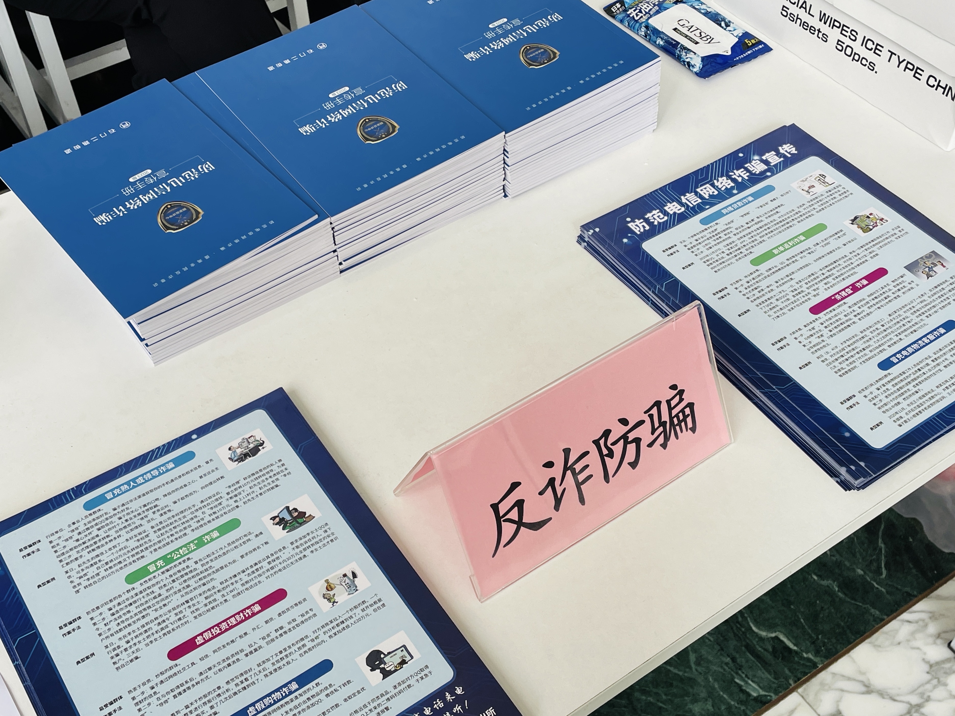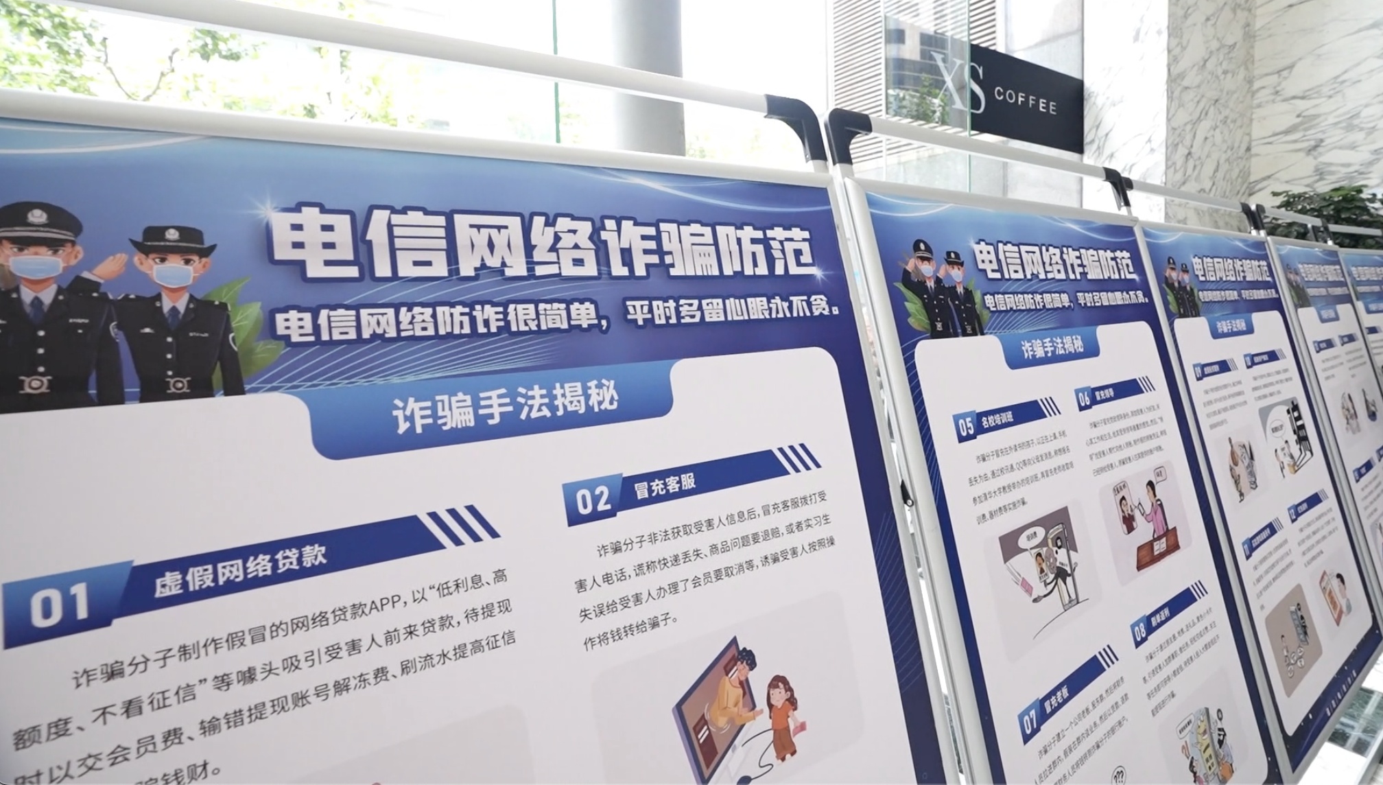 活动期间,街道在凯迪克大厦1楼大厅的醒目位置设立了宣传咨询展台,在周围摆放了电信网络诈骗防范系列展板。