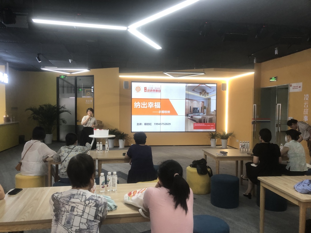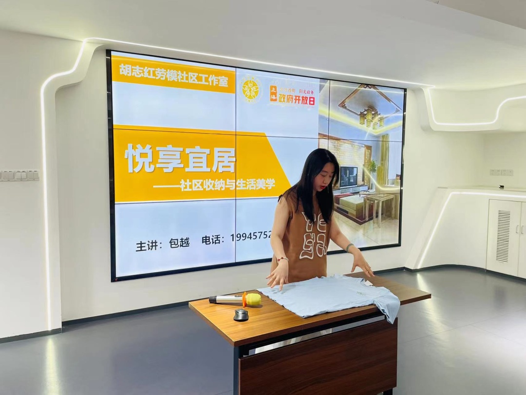 为了提升社区居民的家政技能,提高生活品质,近日,在8月的政府开放月活动中,徐汇区凌云街道分别在社工站及水岸邻里汇举办了两场以“衣柜收纳”为主题的公益讲座。讲座邀请了胡志红劳模工作室的两位老师,为社区居民分享收纳技巧,及实操练习。