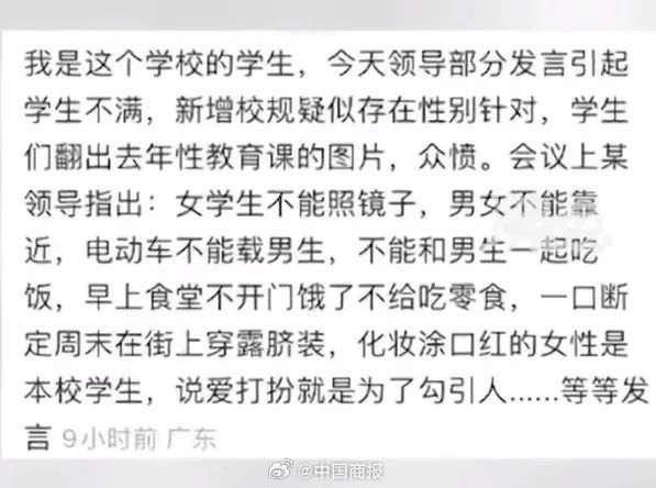 与校领导部分发言、新增校规中存在性别针对性内容有关。