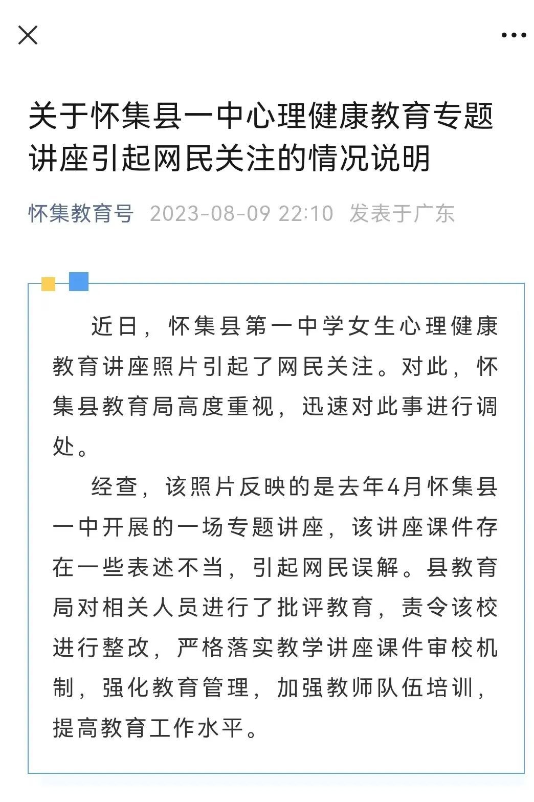 怀集县教育局发布情况说明,