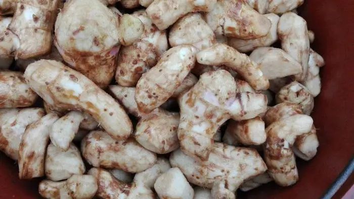 它的块茎处理起来比较麻烦,挖出后先清洗土壤,在削皮,同时还要浸泡于食醋中以防氧化(它的氧化速率很快,几秒就发黑),所以若想尝试,建议购买成品蕉芋粉即可。同时,不要使用污染地区的美人蕉块茎,其块茎内会富集许多有害物质。
