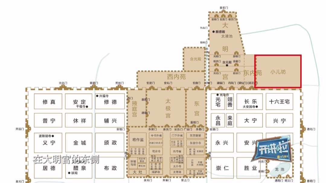 侯宁彬介绍,唐代长安有一百零八坊,但小儿坊不包括在内,它在整个长安城的外城墙之外,位于大明宫东侧,相当于东内苑的一部分。这里的“小儿”不是指小孩,而是专门驯养围猎动物的人。