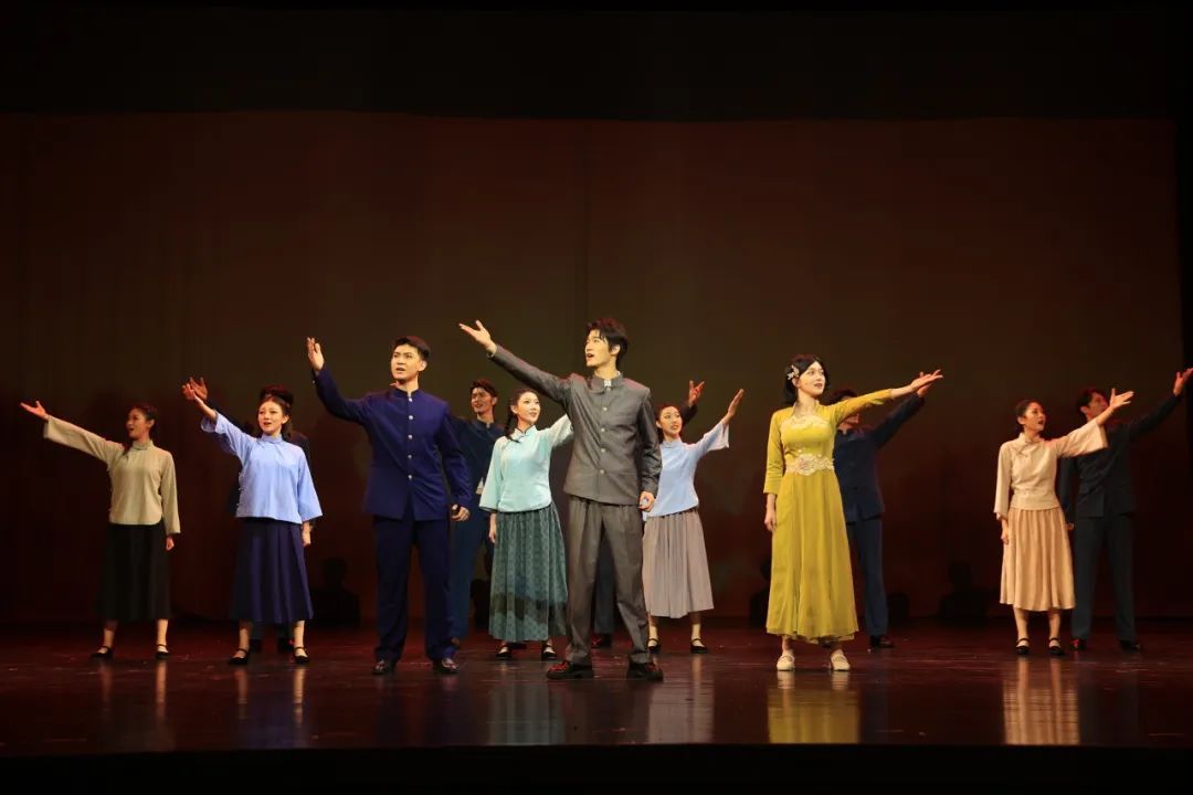 音乐剧《家》讲述家,讲述爱,讲述觉醒,讲述青春,一群热血奔腾的年轻人为家国与理想而奔走呼喊。巴金的《家》的精神内核与力量影响了一代又一代的年轻人,学院年轻的师长学子们正是这精神的后来者与继承人。在舞台上,他们教学相长,在故事中,他们振臂呐喊,青春的热力在舞台上被点燃,精神在这共振的同频中传承。