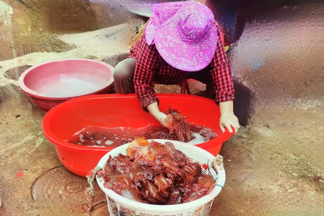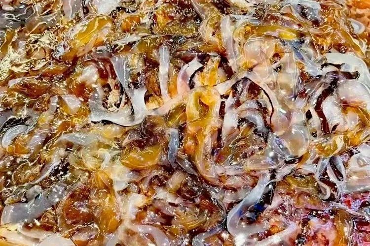 近日,海湾旅游区金汇港南闸码头,三十多艘小渔船陆续返港,渔民们正忙着将一桶桶腌制好的海蜇搬运上岸。 杭州湾海蜇远近闻名,每年七月正值海蜇捕捞季,但只有短短十来天。在此期间,获得海蜇专项捕捞许可证的渔民,可以根据潮汐变化,在杭州湾指定海域进行捕捞。“今年的海蜇产量少,只有去年同期六成,一艘船大概捕捞到1000斤左右,加工后卖出去的价格和往年差不多,海蜇皮每斤35元,海蜇头每斤40元。”有着多年海蜇捕捞经验的滩浒渔民乐卫平说,大家都希望等到8月中旬全海域正式开渔后,能一天天多起来。 分割、清洗、腌制……经过祖祖辈辈的技术沉淀和经验积累,形成了日趋成熟的滩浒渔民海蜇古法腌制技艺。2020年,该技艺成功入选奉贤区第七批非物质文化遗产代表性项目。 像很多其他海洋生物一样,海蜇营养十分丰富,是一种高蛋白、低脂肪、低热量的营养食品,同时富含维生素及钙、磷、铁等物质,尤其含有人们饮食中所缺的碘。 都市人吃海蜇,大多喜欢反复清洗好切成丝,然后用凉水浸泡沥干,加入香菜、黄瓜丝或萝卜丝、红菜椒等配菜,再加入适量糖,淋上少许香油,一份凉拌海蜇就完成了。 对渔民们而言,最经典的吃法则是海蜇汤,说它昙花一现并不为过,因为离了这个季节,再想享用,真就吃不着了,汤的做法说简单却有一定讲究,其清爽鲜美,是消暑的佳肴。 “尝尝我们腌制的海蜇,口感好,嘎嘣脆......”这个秋天,你还可以走进海湾旅游区海棠社区“滩浒三宝”非遗文化工坊(海佳路28弄),近距离观察老渔民演示海蜇古法腌制过程,共同感受幸福的味道、生活的美好。
