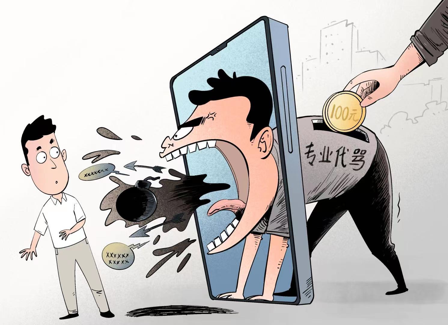 不法分子利欲熏心,经营起代骂人、代吵架等灰黑业务,受雇在目标人物的社交平台账号下通过留言的方式网暴辱骂,或者加好友后私信对方,采用粗鄙、恶心的话语大骂,不仅污浊了网络空气,而且违背了公序良俗和法律法规,受到严惩完全是咎由自取。雇人代骂,无助于纠纷解决,还会产生新的民事侵权纠纷,情节严重的还可能涉嫌侮辱、诽谤犯罪。生活中遇到情感、经济等纠纷,应该通过合法、合规的途径解决,千万别用骂人来解气。
