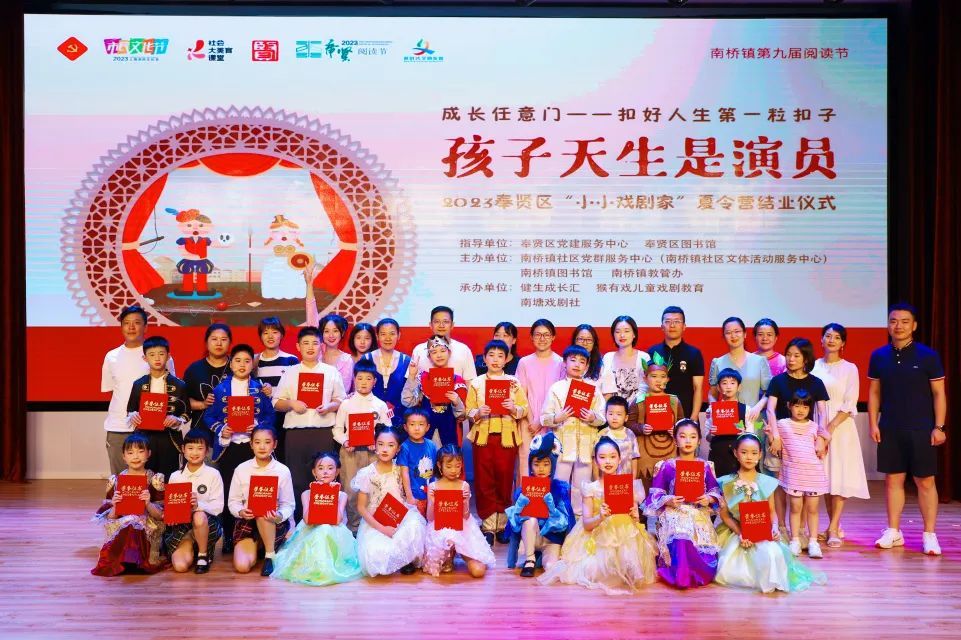 小 小 戏 剧 家 盛暑炎炎,蝉鸣声声 一群天真可爱的孩子 一场沉浸式戏剧体验 一份美好难忘的回忆 即刻开启! 昨天下午,2023奉贤区“成长任意门——扣好人生第一粒扣子”孩子天生是演员“小小戏剧家”暑期夏令营结业仪式在奉贤区图书馆三楼小剧场举行。 华丽的服饰装点上身 夺目的灯光亮起 瞩目立于舞台之上 孩子们的《仲夏夜之梦》 徐徐拉开序幕 一起来回顾精彩瞬间! 专业的服化团队为小演员们打造精美舞台妆,定格这难忘的回忆。孩子们在专业老师的指导下,呈现一场精彩的演出。现场为每一位小演员分别颁发了进步神速奖、演技突破奖、闪耀舞台奖,现场掌声阵阵,每个孩子的努力都得到了肯定! < 左右滑动查看更多 > 孩子天生是演员,戏剧既是孩子的“玩具”,也能成为他们的“教科书”。一周的戏剧夏令营,通过课程+舞台的形式,激发孩子对表演的兴趣,让孩子拥有展现自我的平台,在欢乐中学习,在表演中收获自信!相信这段独特的夏日记忆,已经在孩子们心里播下梦想的种子,希望在某一天会开花结果,收获美好未来。 报送:周燕萍、徐平浩(南桥镇) 编辑:夏阳 • end • 往期精彩回顾 将“振兴策”写在田野大地上丨大兴调查研究 奉城这场纳凉晚会热闹开演,社区“民星”纷纷登台亮相! @奉贤市民 夏夜里、星空下,快来看一场露天电影吧~ 夏日限定“多巴胺”果冻糖葫芦,你心动了吗? 中医推拿之小儿穴位按摩操丨杏林之声