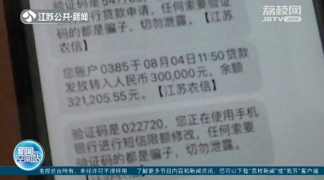 刘女士信以为真。骗子在取得刘女士的信任之后,通过‘屏幕共享’了解到刘女士的信息,然后在手机银行里面,给刘女士贷了一笔30万元的贷款。”南通如皋市公安局反诈劝阻员黄金波说。