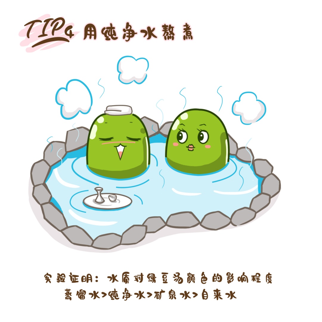 2、煮绿豆汤时,所用的锅和水都很重要,要避免铁锅和自来水,以免煮出的绿豆汤氧化变色。