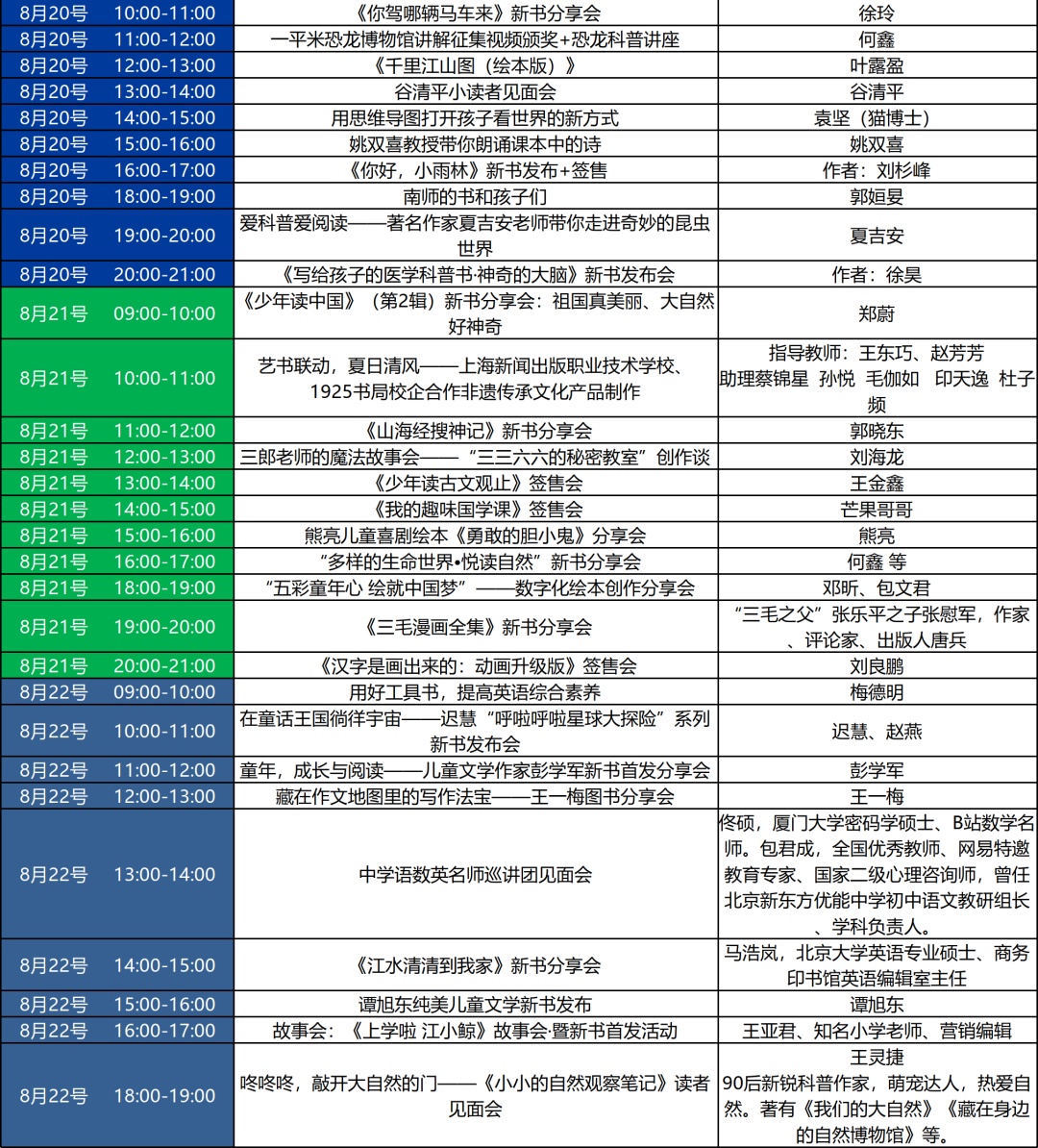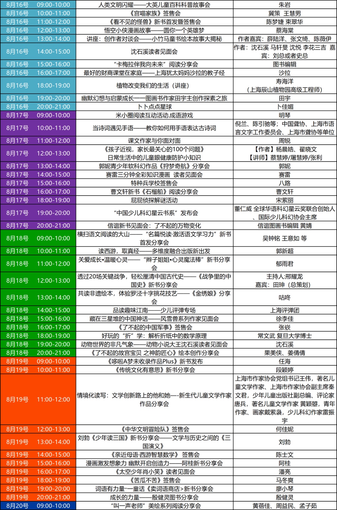 本届书展不但扩大了各类活动的范围,在上海展览中心多处分布设置了活动区;还增加了活动的种类与数量,除了“国学七天七堂课”“相约星期二”等经典活动外,各参展单位都将推出丰富多彩的阅读活动。