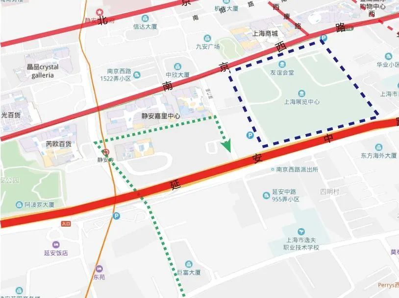静安交警分别在上海展览中心南侧(1号门东侧)、北侧(南京西路7、8号门之间黑黄格线处)各设置了一个临时下客点,对观展车辆实行“即停即走”的交通管理措施,自驾前来观展的市民自行至周边商业停车场有序停放车辆。