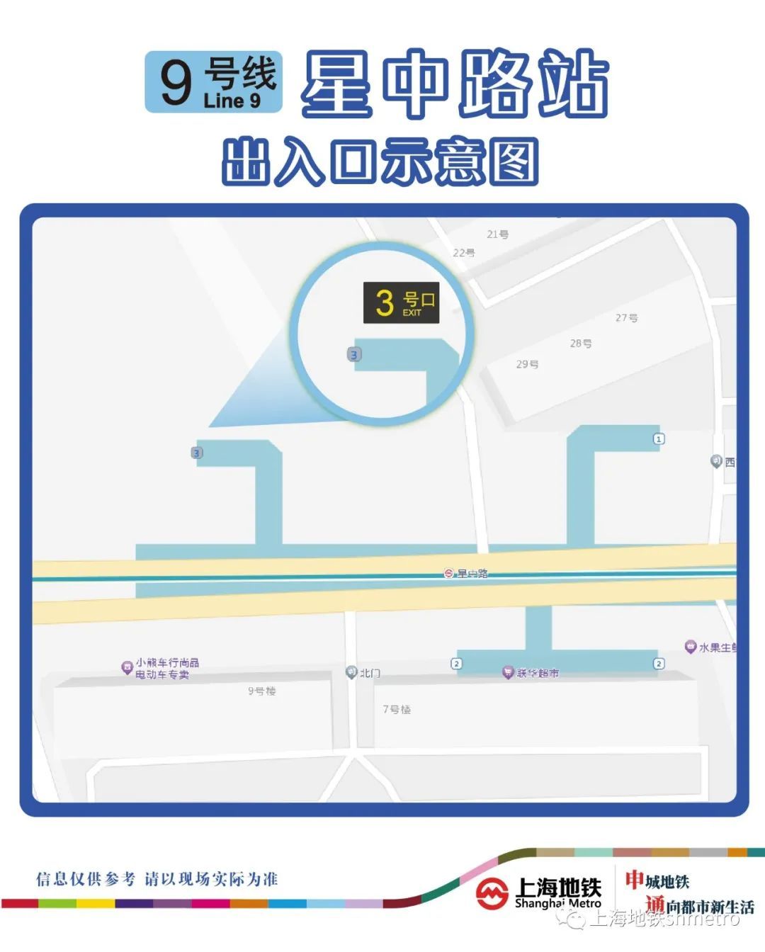 据申通地铁集团消息,今天起,地铁9号线星中路站,9号线漕河泾开发区站,1号线中山北路站,1号线上海马戏城站出入口均有调整。