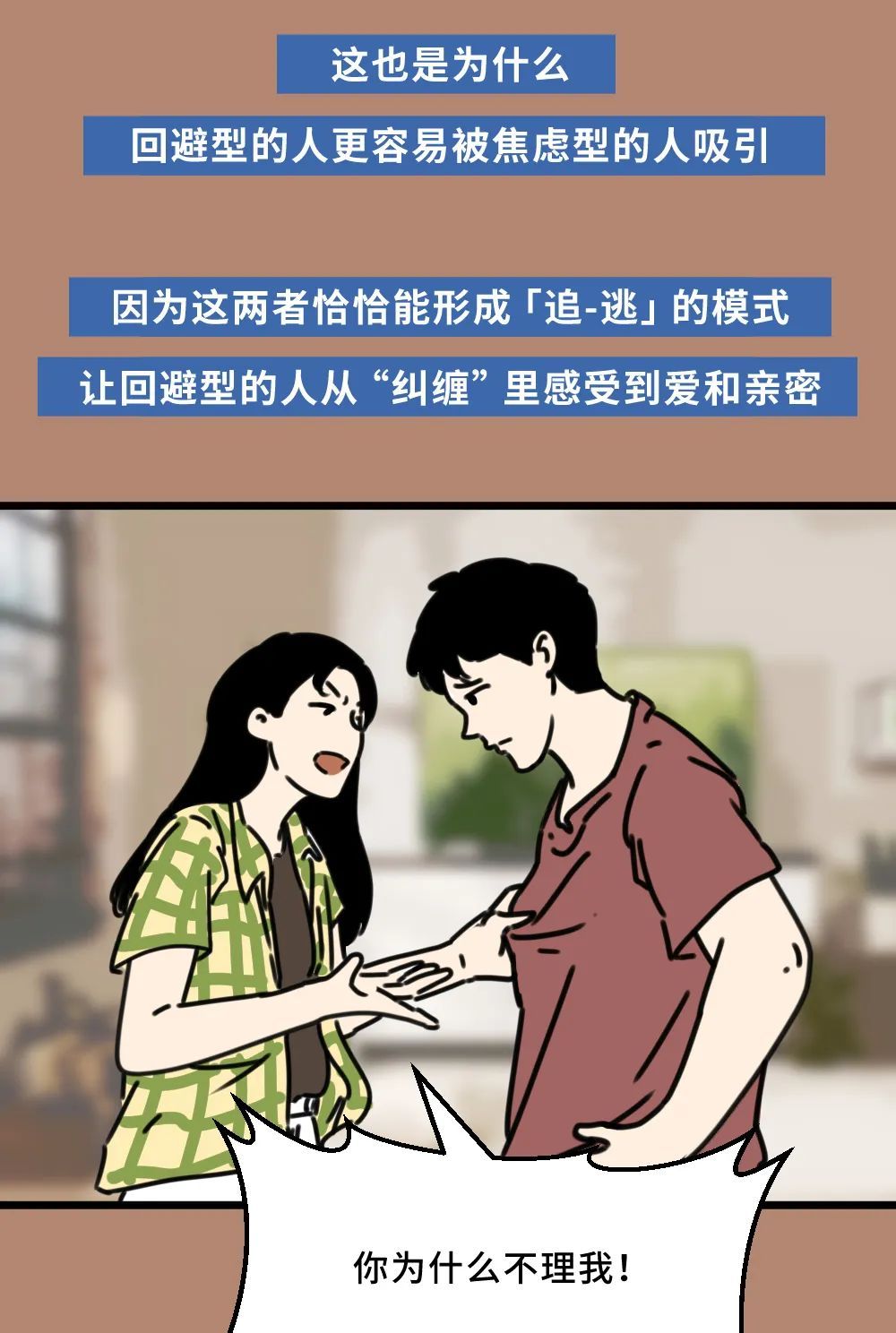 我想要补充强调的是,今天虽然我们一直在讨论“回避型”、“焦虑型”恋人,但我并不鼓励大家在关系里去过度地、频繁地给伴侣或自己贴上这些标签。