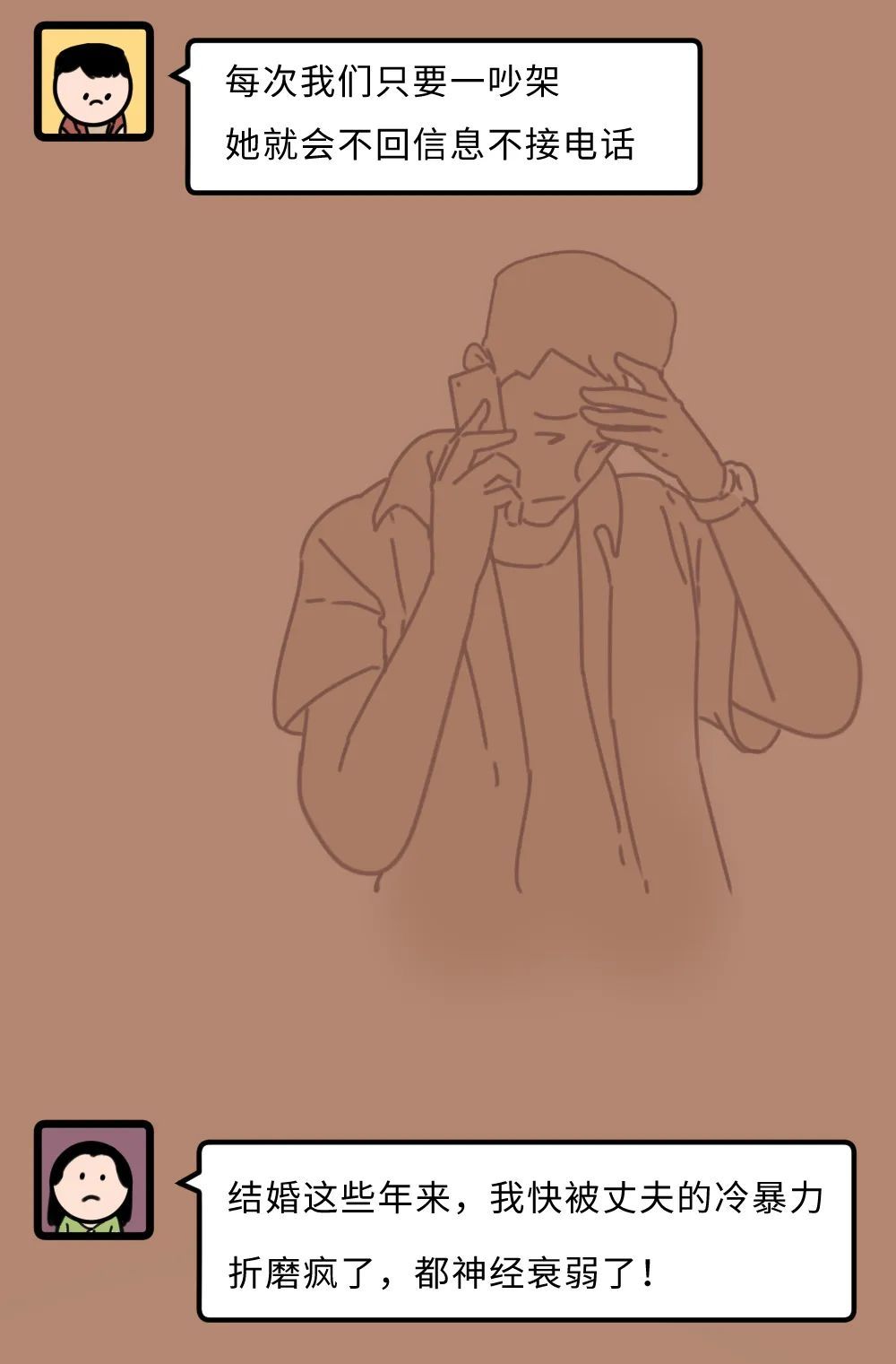 在创作这篇漫画时,我采访了身边许多遭受过冷暴力,和回避型伴侣纠缠了很久的朋友、同事。
