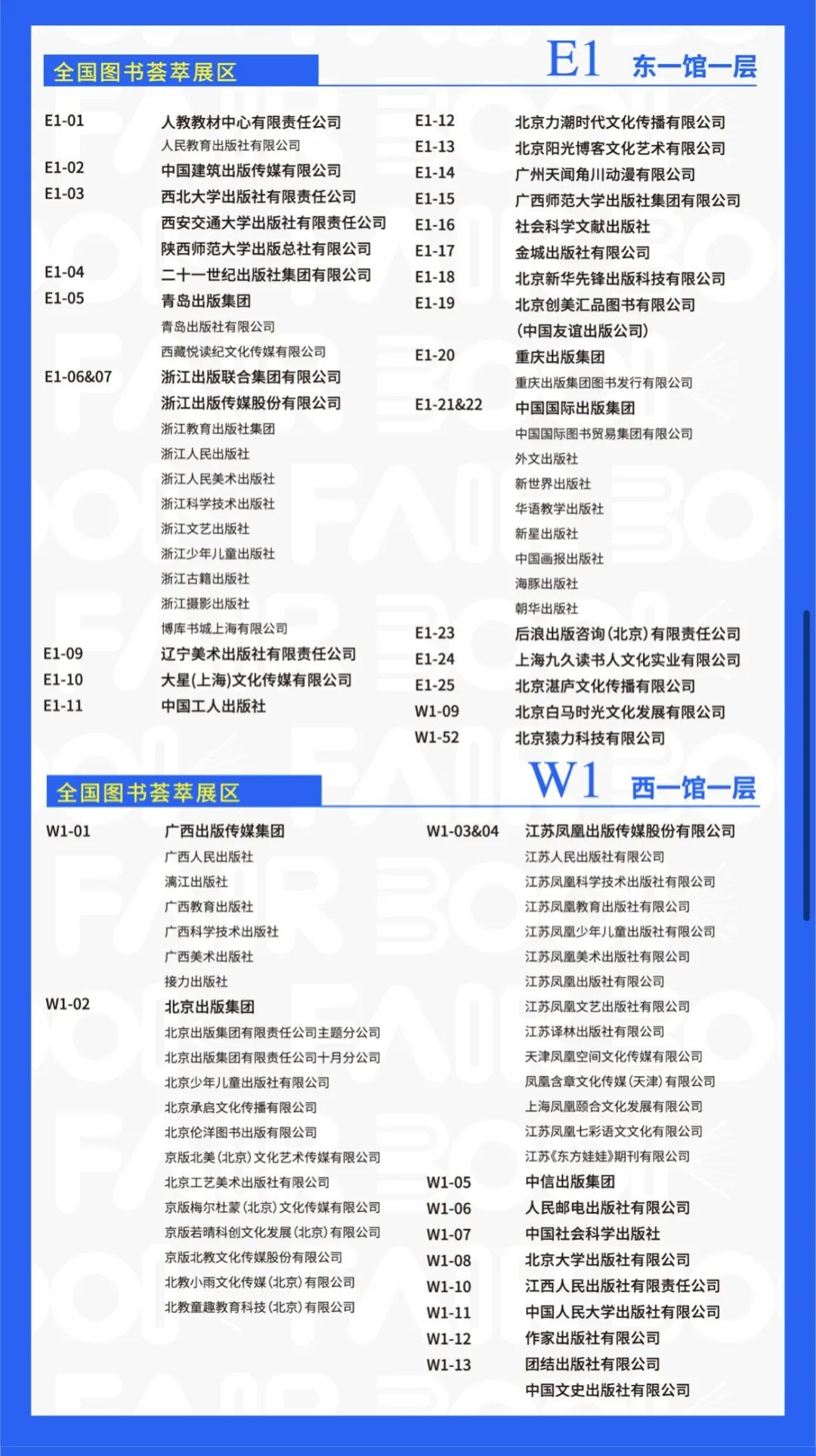 东一馆一层和西一馆一层均为全国图书荟萃展区,今年有哪些外地出版社、出版集团和品牌亮相?惊喜留待读者现场发现。