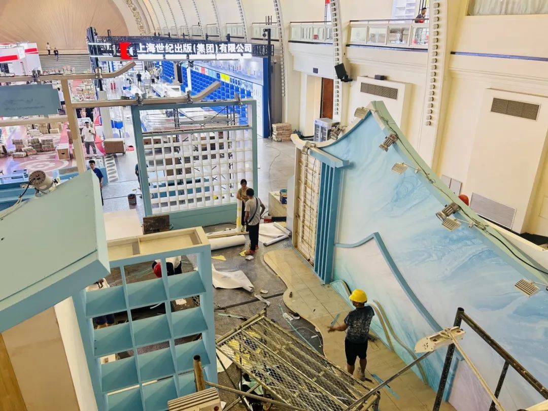 2023上海书展暨“书香中国”上海周8月16日拉开大幕,主会场上海展览中心布展工作正在紧锣密鼓进行中。今年主会场布局进行了较大幅度的优化调整,现场怎么逛?看什么?