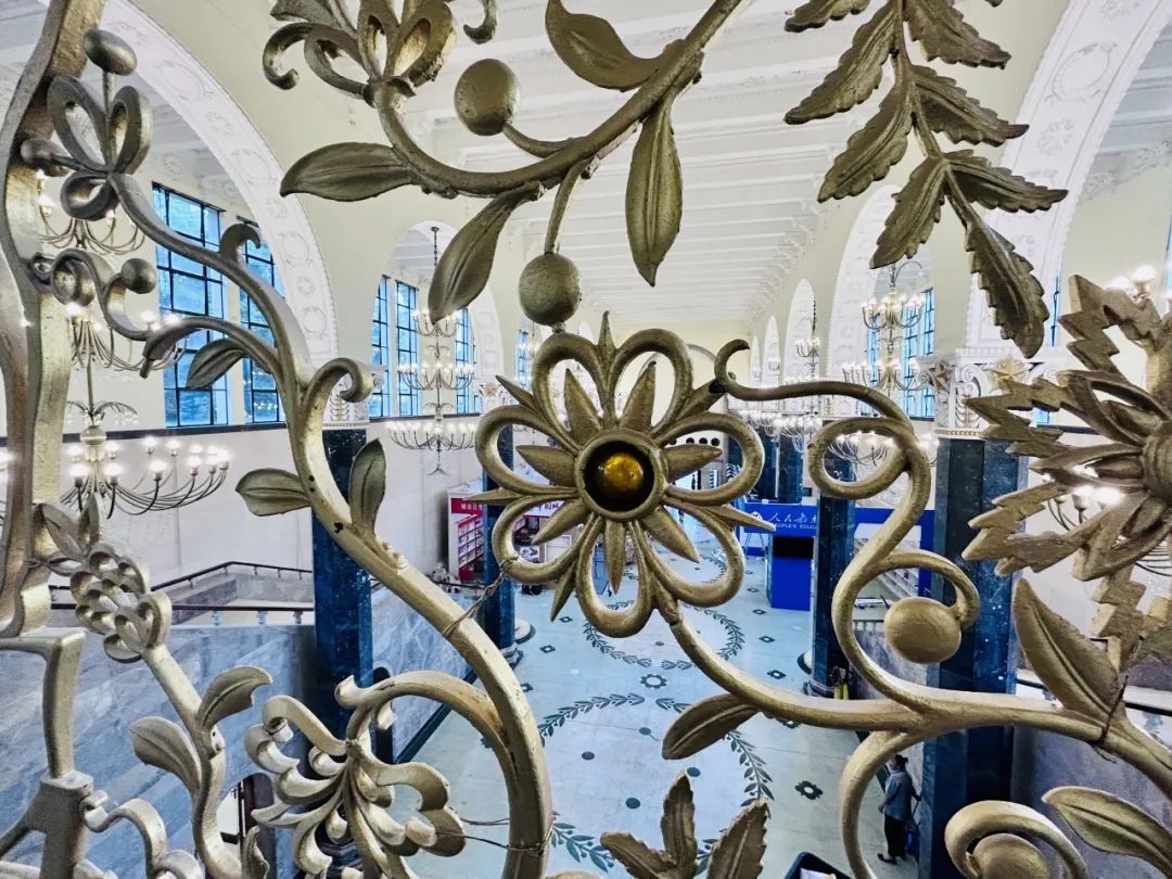 在序厅主雕塑前打卡留影,是不少读者参加上海书展的“仪式感”。今年,在序厅美丽的雕花穹顶之下,书展主雕塑以剪纸风呈现,颇有艺术感。抽象的高楼大厦窗户里,有认真捧读手中的书的孩子,也有弹奏乐器的青年男女、爬山健行的运动者,充分诠释了“我爱读书,我爱生活”的上海书展主题。面朝入口,主雕塑底部那句“让上海书展真正成为服务全国的大平台”,则是今年上海书展打造“在上海的全国性书展”的初心之源。