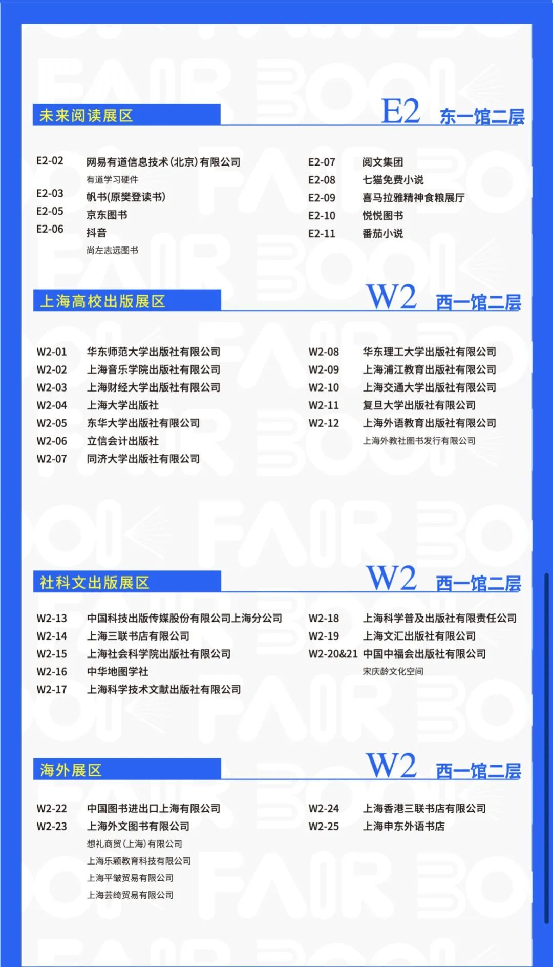 西一馆二楼还入驻了上海社科文出版展区和由中国图书进出口上海有限公司、上海外文书店、申东书城、上海香港三联书店等组成的海外及港台地区图书展区。